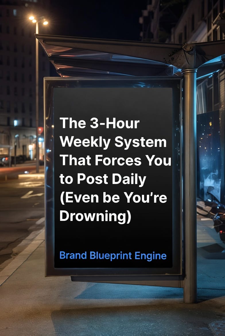 Every Monday you swear this is the week you'll show up daily. Tuesday arrives. Meetings devour your morning. Client fires burn your afternoon. Evening hits and your brain turns to mush. You stare at a blank screen. Nothing comes. You post nothing. Wednesday repeats the cycle. By Friday you've ghosted your audience again. They forget you exist. Competitors who post daily own the space you should dominate. Your inconsistency screams amateur. The market rewards relentless visibility.